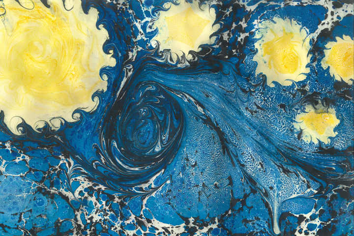 參加者需於水面上滴上顏料,運用畫筆於水上設計創作、繪畫出不同圖案及線條,運用畫紙將將水面上圖像拓印,塑造出具個人特色的水油畫作品。
